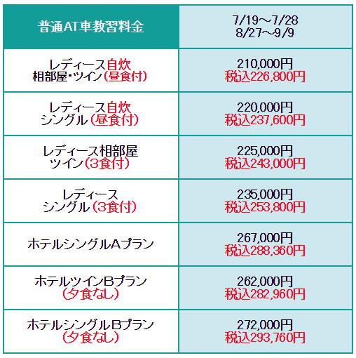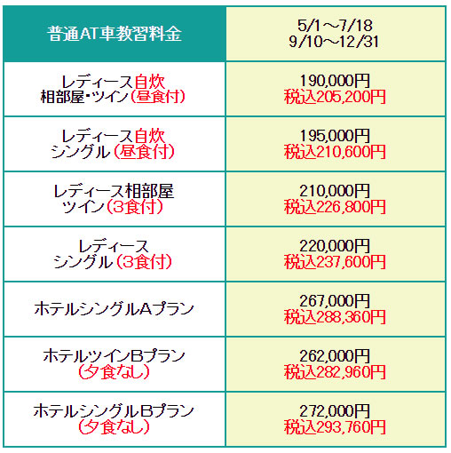 ※MT車は上記料金表より16,200円UPです。