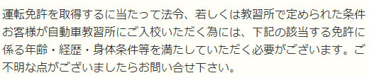 運転免許を取得するに当たって法令、若しくは教習所で定められた条件