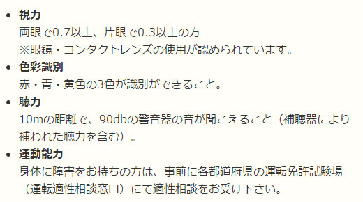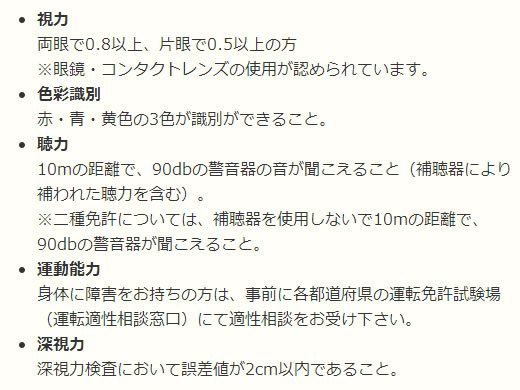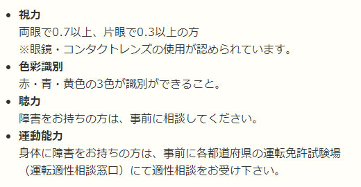 身体条件(中型、大型、けん引、二種免許を取得する場合)