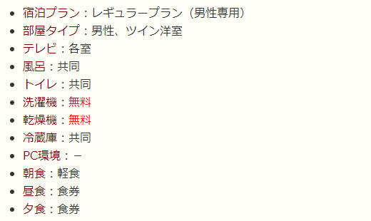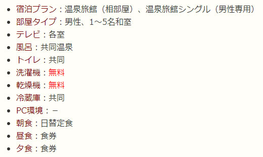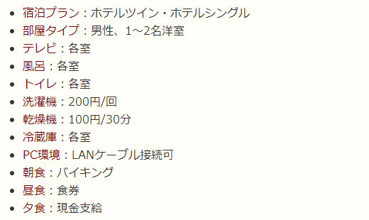 男性専用の宿泊施設(ホテルタイプ)です。