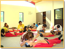 教習所では運転技術や学科教習だけでなく、万が一事故を起こしてしまった時の為に このような応急処置方法も学びます。普段の生活では分からない 大切な知識ですので、『自分に限って事故なんか起こさない』とは考えず しっかり応急処置方法を身につけましょう。