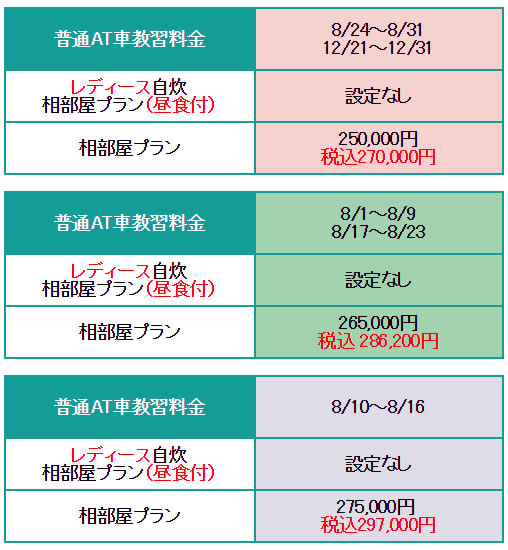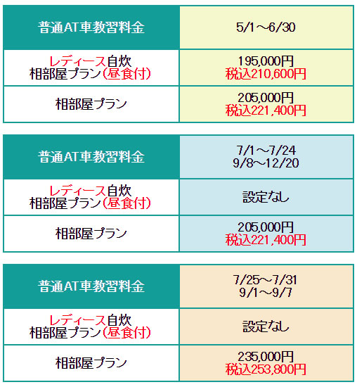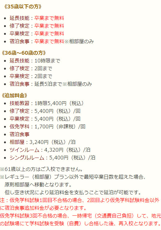 下記料金の他に、学校にて別途諸費用(教材費)5,400円および仮免許手数料2,800円(非課税)が必要です。