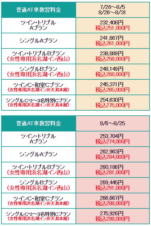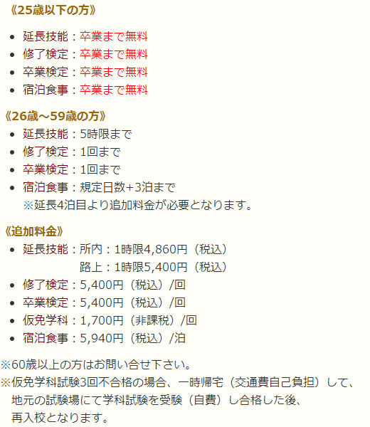 合宿の時期・所持免許・取得免許等によって変わりますので、詳細はお問合せください。
