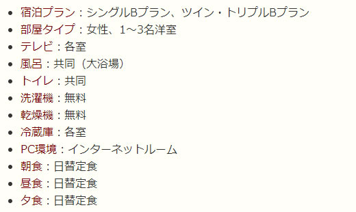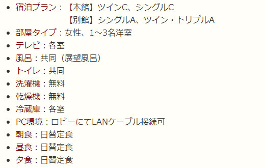 また、2011年の夏にOPENした女性専用の宿泊施設も